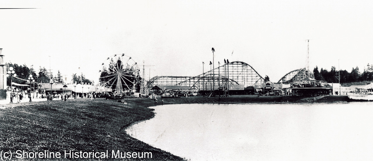 1931. Panorama of the new Playland Amusement Park. From 1930 to 1960 Playland did much more than just amuse the population. It was the darling of the Pacific Northwest, emplying many dozens of people throught the Depression and beyond, entertaining thousands upon thousands more. According to longtime local newspaper columnist Ranny Greene, "it was the most fun you could have for a dime." Photo is courtesy of Jim Sneddon.