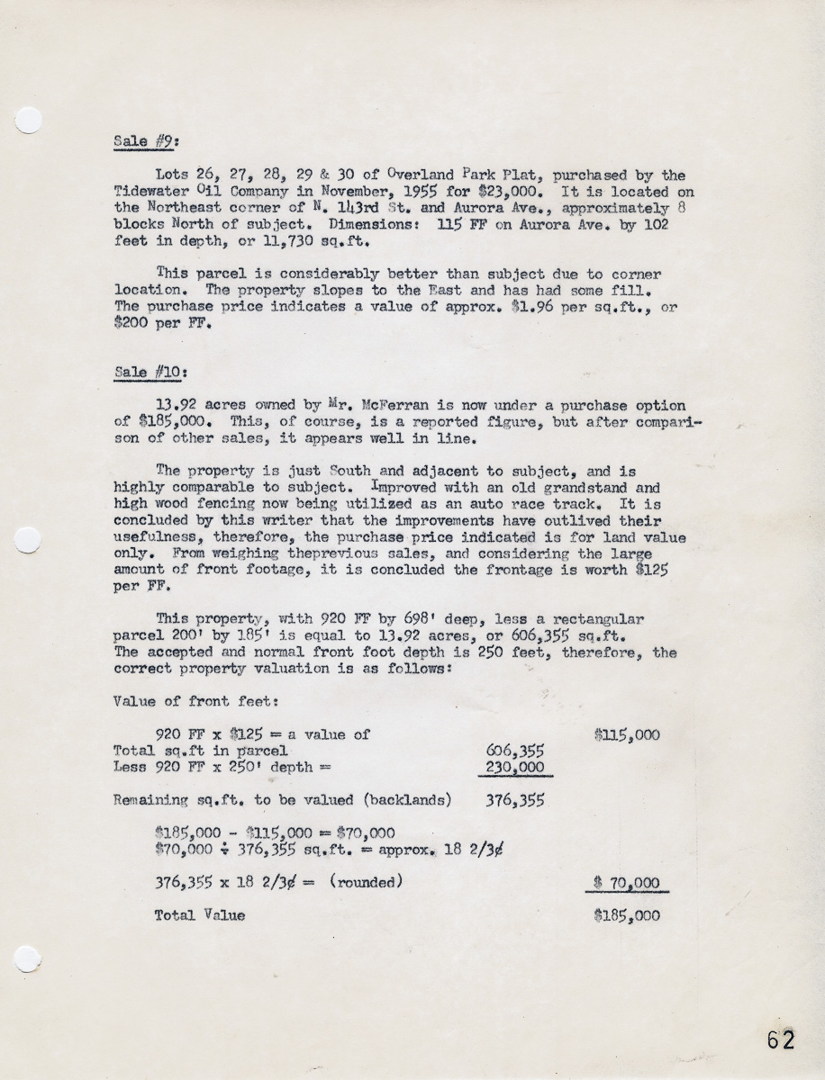 Continuation of "Comparable Land Sales for Aurora Avenue Frontage and Backland" from pages 59, 60 and 61.