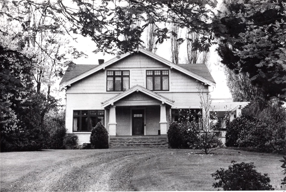Built in 1913, photo taken in early 1940s. Lake Forest Park home of Mary C. Tryon and her sister Louise F. Proctor. First homes in Lake Forest Park. This view taken mid-1940's by Frank D. Ford, during the residency of Otto. L. Erickson who lived there until 1984. See "Growing Up With Lake Forest Park" p180.