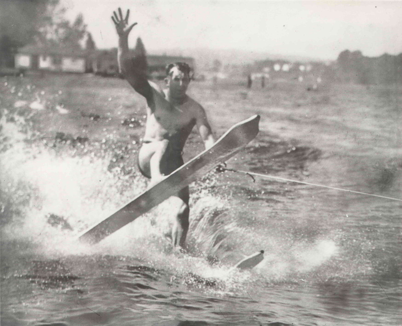 1930. Don Ibsen on his water-skis which he invented in 1927