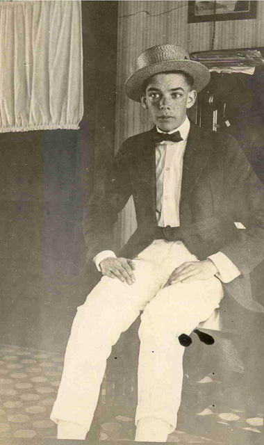 1920. Max Richards sitting on a piano bench. Photo donated by Margary (Richards) Hanson