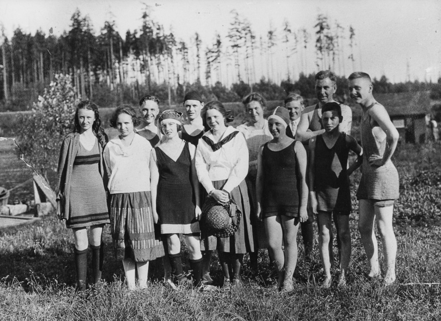 1924. Graduating class picnic at Echo Lake Bathing Beach. Florence Butzke front row, third from right. In back row, Mr. Parsons rightmost, Miss Henry third from right.