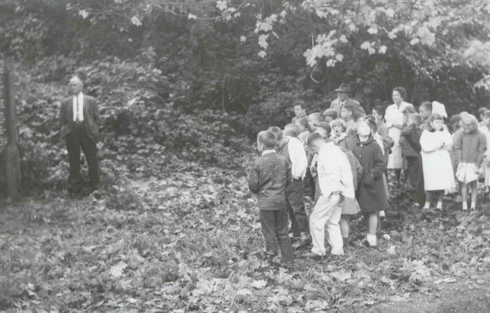 October 15, 1962. Shoreline Historical Society dedicates historical marker to "Carlsen Hill with Underground Spring and Maple Tree."