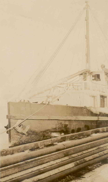 Dec 18, 1924. Ice on the Standard Oil ship Contra Costa after passing through the blizzard of Dec 15 on trip from Point Wells to Bellingham and back. Photo taken by John Norman at Point Wells. Ship master G.E. Bratt.