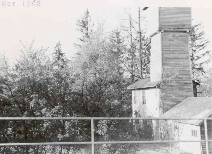 This tower on the NE corner of 145th Street and Aurora Avenue was used as a lookout during WWII. Probably built in the 1920s, in this picture it's old and unused. The windmill has no vanes, windows are broken and trees are growing out of the building.