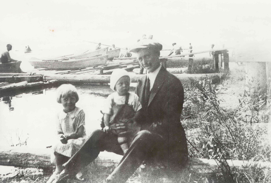 1923. Edward C. Conrad with Betty and Gordon at Kenmore log boom park