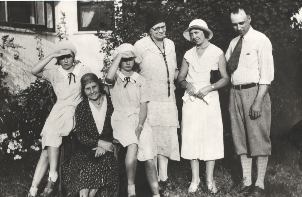 1929. Persis Sommerville, Mrs. Fred Eppinger, Phyllis Sommerville, Eloise Mohr, Lucille and William Sommerville. Persis and Phyllis are identical twins.