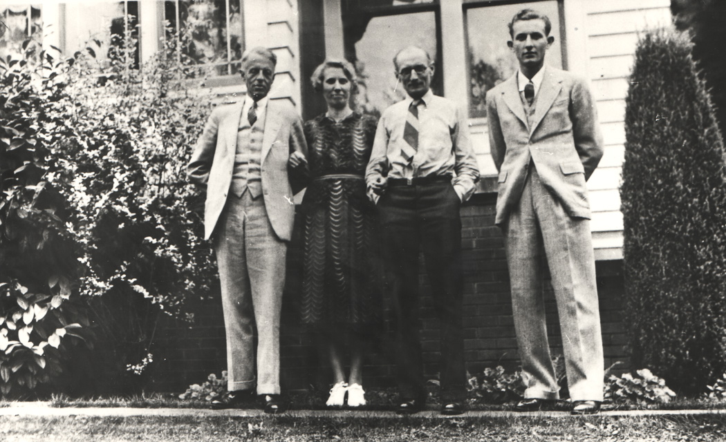Peter "PJ" and Frieda Swanson, with son Ken and friend in front of their home on Brookside Blvd and MacAleer Creek around 1930. Their four-bedroom home was built 1927. See "Growing Up With Lake Forest Park" Vol.1 p.177-8.