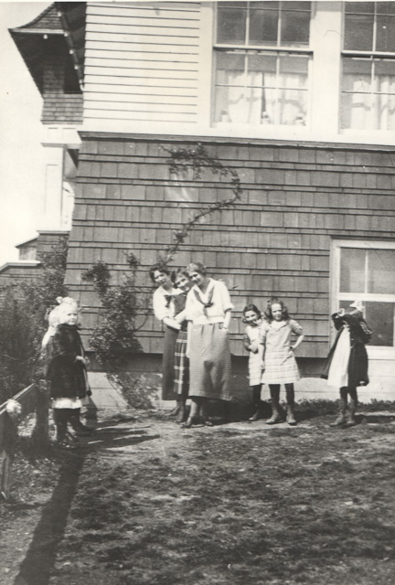 Spring 1921. Lake Forest Park School. Some teachers and students in a group photo at recess.